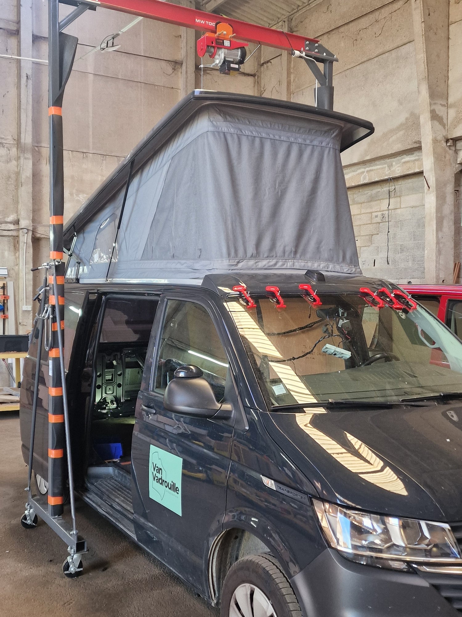 Agrandissez l'espace intérieur de votre van avec les toits relevable SCA que nous pouvons installer dans notre atelier. Gagnez un couchage supplémentaire et tenez debout à l'intérieur du van, un vrai confort supplémentaire !