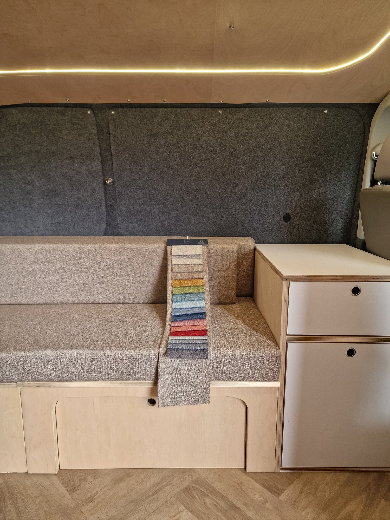 Rien ne vaut un bon matelas et une bonne assise pour profitez de vos escapades en van aménagé ! Nous travaillons avec un artisan-sellier pour vous fabriquer des mousses et des housses sur-mesures de qualités. Vous allez pouvoir choisir la densité et le tissu des housses.