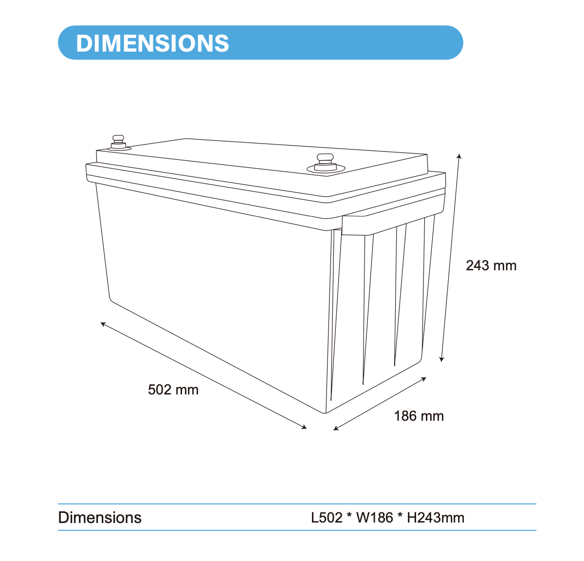 - Dimensions (L × W × H) mm : 502*186*243 mm, identique à UBL-12-150